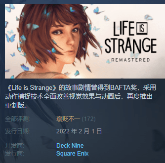 《奇异人生:重制版合集》今日登陆Steam 国区售价273元
