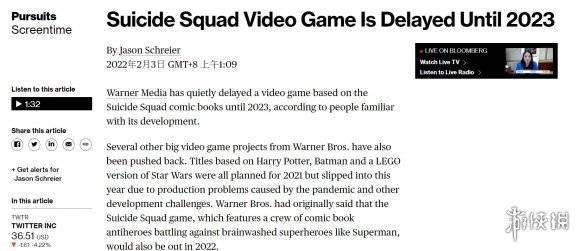 彭博社爆料《自杀小队:战胜正义联盟》将跳票至2023年