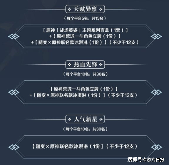 在联动新阶段中,双方发起了一个“冬日吃冰热血挑战赛”,简单而言就是邀请大家来一波花式吃冰淇淋的创意挑战。具体参与方式很简单,只需要在指定的平台,上传自己花式吃联名款冰淇淋的视频或者图片都能参与,活动奖励也非常有意思,甚至有机会获得原神“战场英姿”主题系列盲盒一套等等。