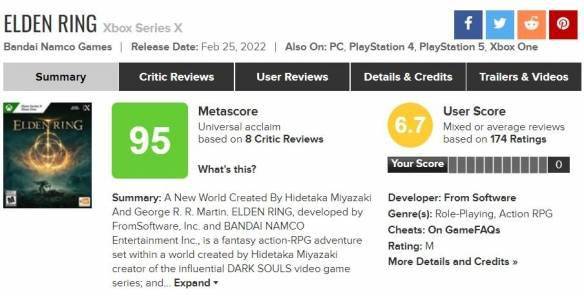 XSX版本:M站 媒体评分95分,玩家评分6.7分