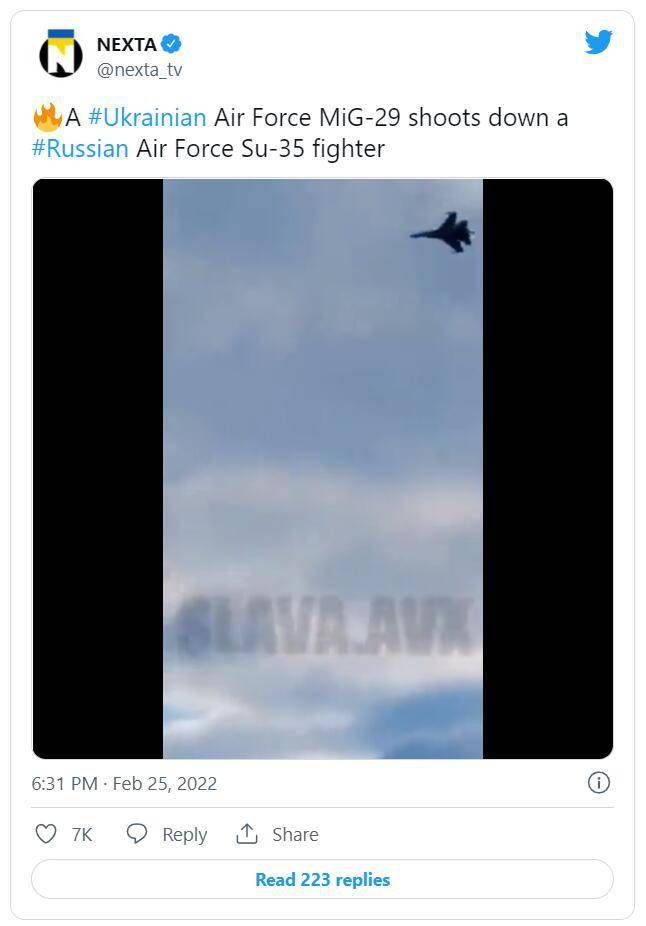 这则视频片段最早来自油管,被制作者用来呼唤传说中的“基辅幽灵”,结果被人搬运到推特之后以讹传讹变成了“空战现场”。