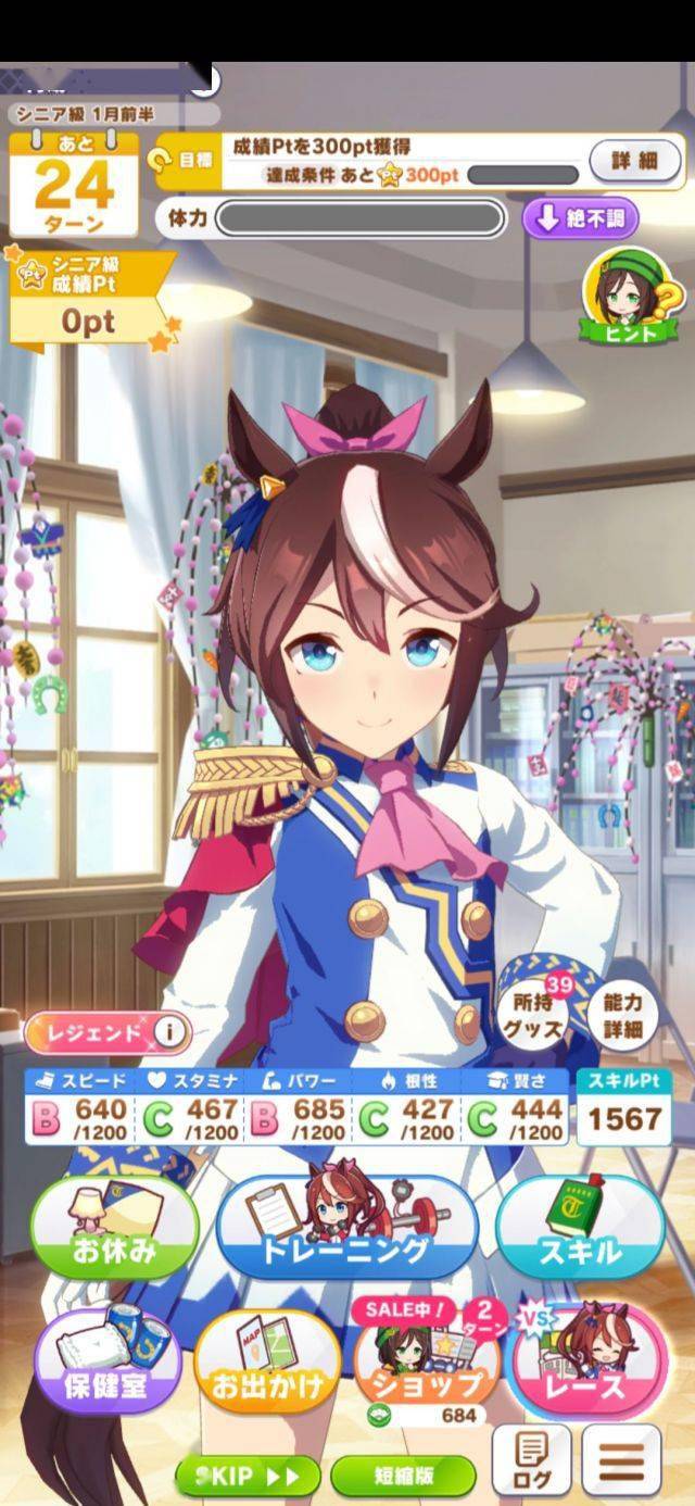 还有就是道具是真的多,第二年就打上36战后,你就再也不用担心商店给垃圾了,第一因为它给啥都是有用的,除了猫粮,治病的,小喇叭和爱娇注目株,基本是全买的,第二是36场比赛下来,只要你不太非,绿帽每6个回合的进货根本不及你连战roll出来的道具数量,但凡连战36场,基本不存在第三年训练道具还没5个的情况。