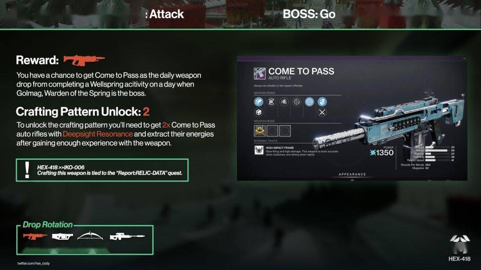问题主要集中在《邪姬魅影》扩展新增的6人活动“泉源”,该活动每天的奖励会根据击杀的Boss掉落4种奖励中的一种,比如在首日击杀泉源守卫戈尔马格就会获得“Come to Pass”自动步枪。