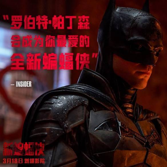 影片由马特·里夫斯执导,罗伯特·帕丁森、杰弗里·怀特、佐伊·克拉维兹、保罗·达诺等主演,故事聚焦一个年轻的蝙蝠侠深入哥谭市地下世界,将通过一系列谋杀案揭露哥谭市内部腐败现象。本片定于3月18日在中国内地上映。