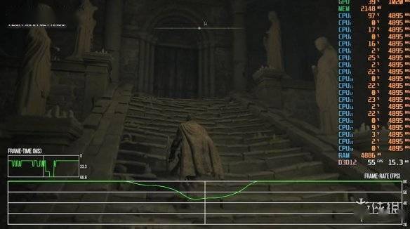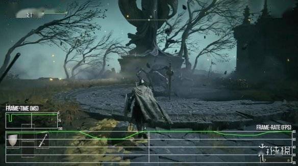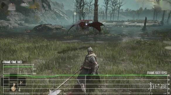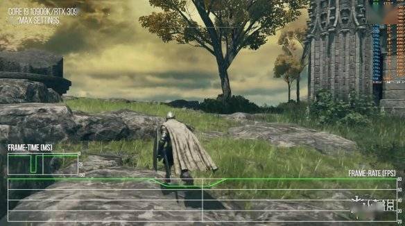 但除此之外,《艾尔登法环》还有其它掉帧问题,似乎是和背景加载相关联:在开场部分登上台阶时必有大幅掉帧,在荒野穿行时也是如此,在开放世界里漫游会出现单帧丢失,并且这种情况没啥规律:有的时候走上几米就能掉好几帧,也有时候走了上百米也没事。