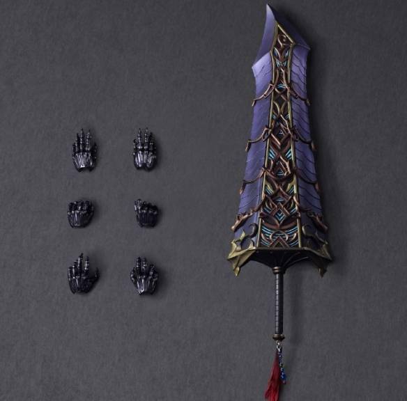 本款手办再现了身着全身黑色铠甲的可怕而厚重的感觉,手握几乎与身高等高的大剑,铠甲细节及大剑表面都刻有精细花纹,布制的斗篷边缘带有细铁丝,能够表现各种动态。肩部及腰部周围的专用关节构架,即使是复杂的造型也能够灵活实现。