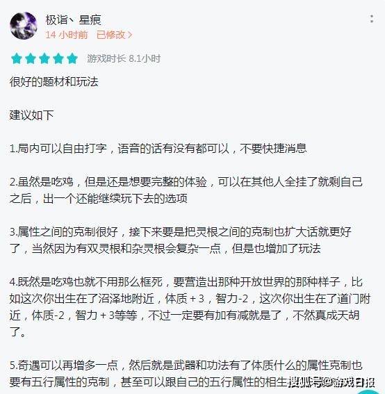 从目前的玩家评论中,也可以看出大家对于《混搭修仙》这款手游的热爱之情,除了常规的“上头”“魔性”评价之外,更多的玩家则积极在为《混搭修仙》出谋划策,通过自己的实际体验,来反馈游戏中目前存在的问题,并且提出一些合理的,且完全可以实施的建议。