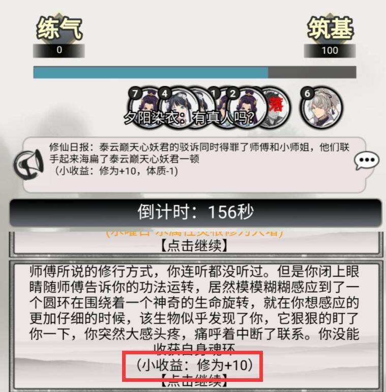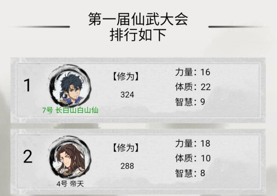 《混搭修仙》中的竞技性,主要体现在每逢境界突破时的“仙武大会”上,比如从“练气”突破到“筑基”境界时,房间内存活的玩家之间会进行比斗,赢家收获修为气运,输家跌落属性,甚至还会影响到后续的游戏进程。