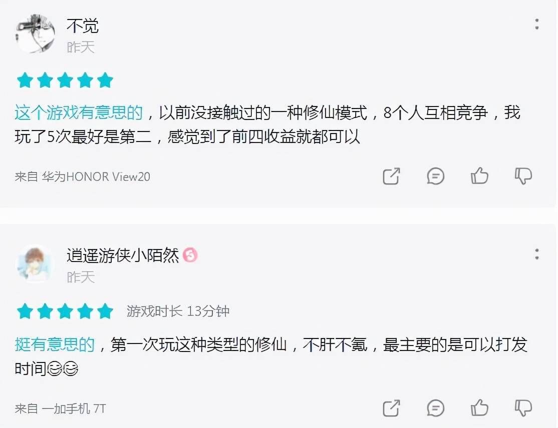 作为一款创意玩法驱动的手游,这种开放式的多人联机竞技修仙模式,也是《混搭修仙》得以爆火的关键。纵观TapTap评论区,“玩法新奇、有创意、有意思”是多数5星好评中所提到频率最多的关键词。
