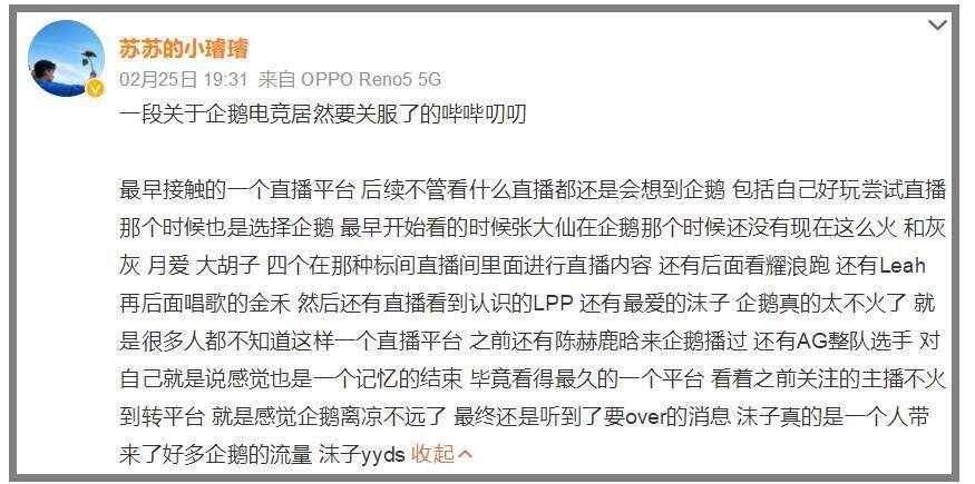 【企鹅电竞目前稳定运营中】 消息称企鹅电竞不晚于6月结束运营,游戏日报向相关人员进行了求证,对方表示“企鹅电竞目前仍在稳定运营中”。值得注意的是,“韩跑跑”、“沫子”、“冷宴华”等游戏领域核心主播已确定离开,且上个月25号就有网友在微博透露平台要关停。