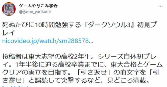 日本高中生直播《黑魂3》:死一次就读十个小时的书
