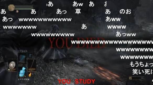 在直播过程中,每一次マタドール的角色死亡,不仅游戏屏幕中会显示「YOU DIED」,还会有网友输入「YOU STUDY」的弹幕,调侃マタドール该念书了。
