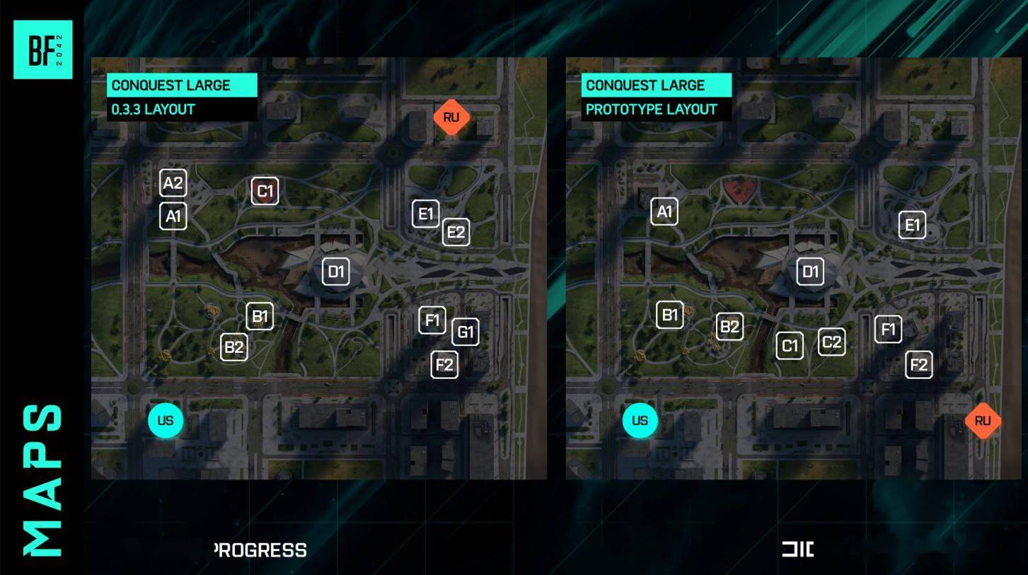 官方计划在之后的更新中缩短某些地图上占领点与重生极度之间的穿越时间,他们打算重新安置重生极度以及最近占领点的位置。地图密度方面,官方正在考虑128突破模式是否保留,目前官方认为64人的突破模式游戏体验最好。