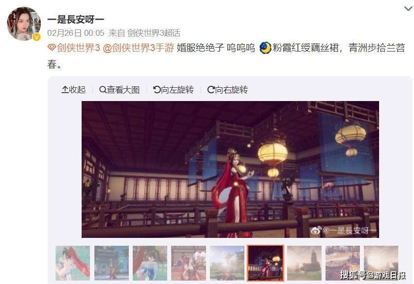 一开始游戏日报君觉得这妹子大概率是西山居剑侠IP的用户,可能还在玩其他剑侠系列游戏,听说了这次新资料片要出“剑中藏剑”新设定的藏剑门派,所以才跑来体验一下。但是翻看了妹子前面的所有微博消息,游戏日报君没有找到一点剑侠IP相关的内容。