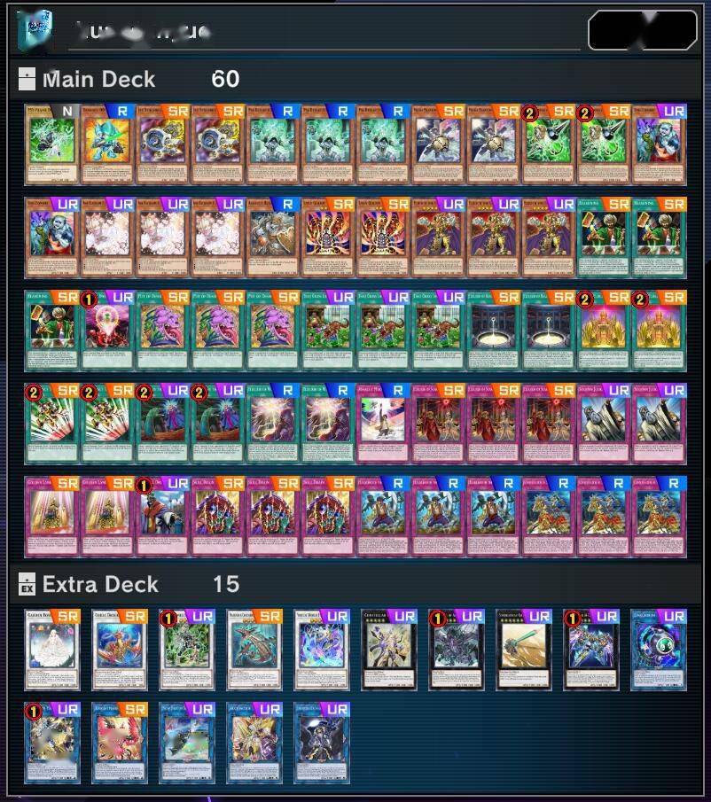 在黄金段位吃了一晚上的胜负电报之后,决定参考目前ocg的60国的构筑,然而目前既没有勇者系统,也没有烙印融合,也没有幻想双魂,幻魔系统的连接十字也在表里,思来想去只有水百能用,于是有了下面的构筑。