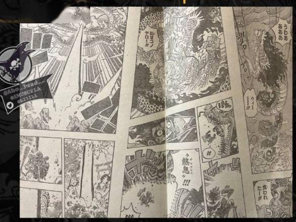 凯多对CP0小队长的现身感到惊讶、扫兴,但已收不住攻势。在那一刻,凯多忆起了20年前击中御田的那一刻(通过凯多的视角呈现)。御田和路飞的表情几乎一致。