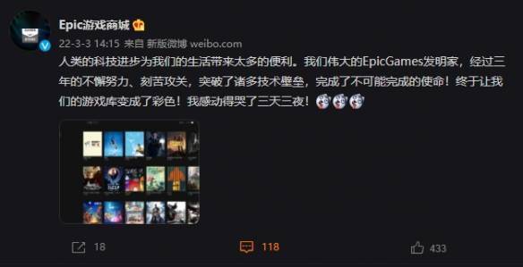 Epic游戏商城今日宣布,经过三年的不懈努力,Epic游戏库的游戏封面终于变成了彩色!