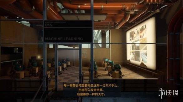 除此之外,在游戏开头的动画里,和Grady一样的机器人们在一个写着machine learning(机器学习)的教室里上课 ,也许是表示光圈科技的人工智能学习进化也是和人类一样的模式?(哈哈)