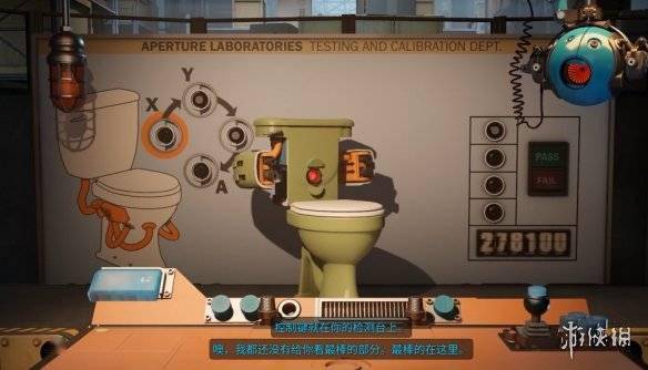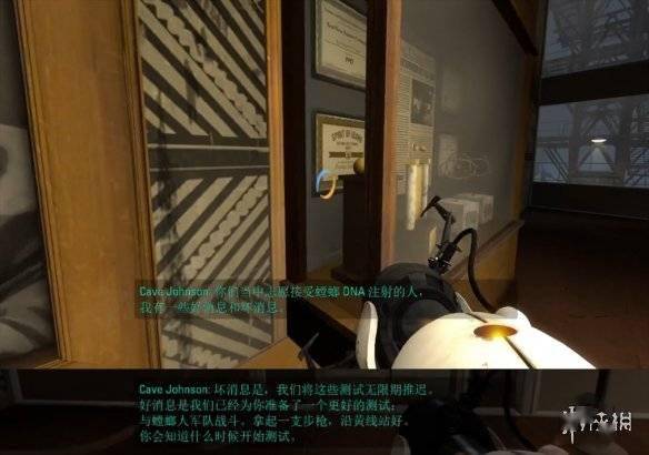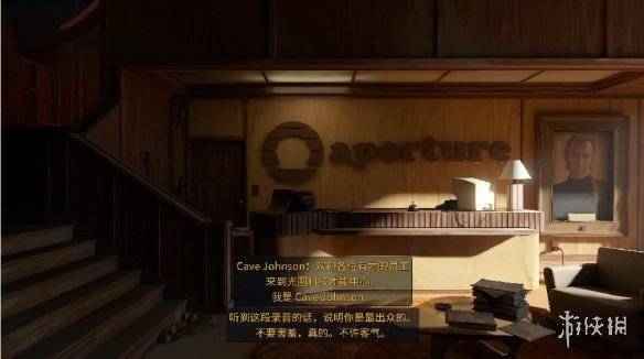 进入游戏,在一个稍显昏暗的房间里,光圈科技的创始人卡尔·乔纳森Cave Johnson先生就开始喋喋不休地描述自己对我们的欣赏之情。