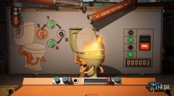 其实整个故事都充满了V社一贯荒诞的黑色幽默的风格,不管是开始的资本家的小桥段、还是结局时乔纳森作茧自缚困在一个大头里,荒诞的风格在故事的核心体现尤为明显:Grady制作的武器是一个马桶,玩家要控制着这个“马桶”对着敌人疯狂哒哒哒哒,敌人则是其他智能控制的洗衣机炮塔…