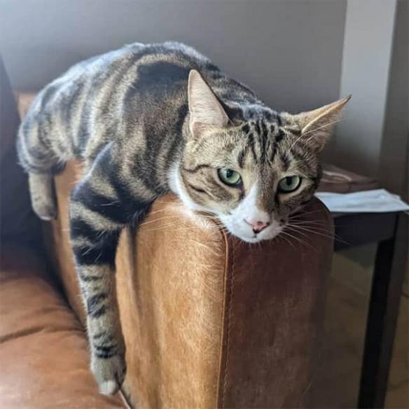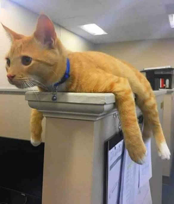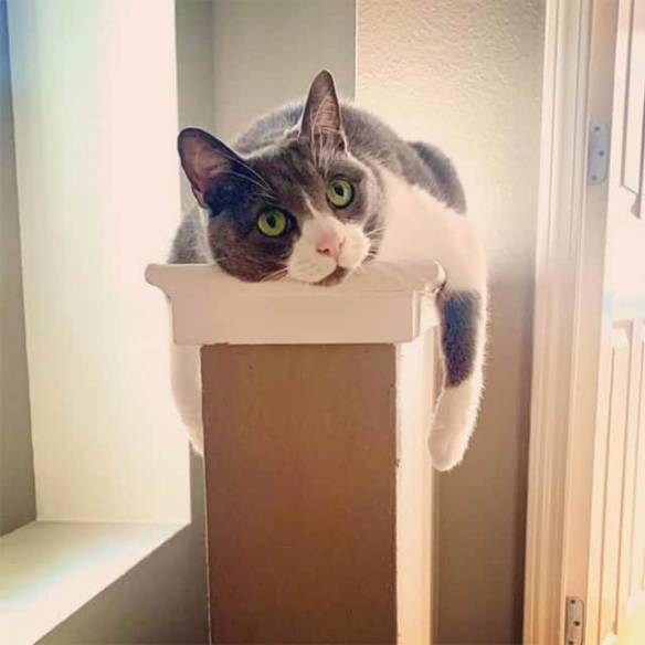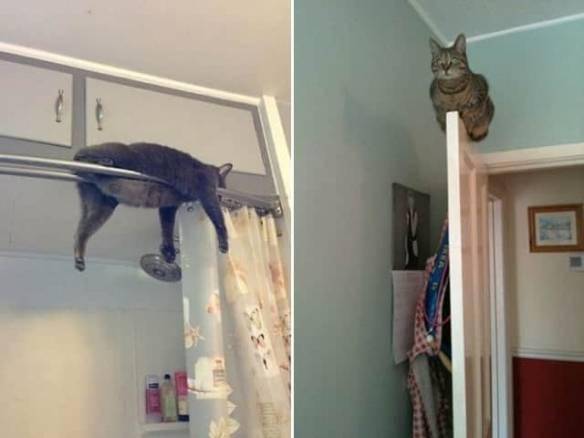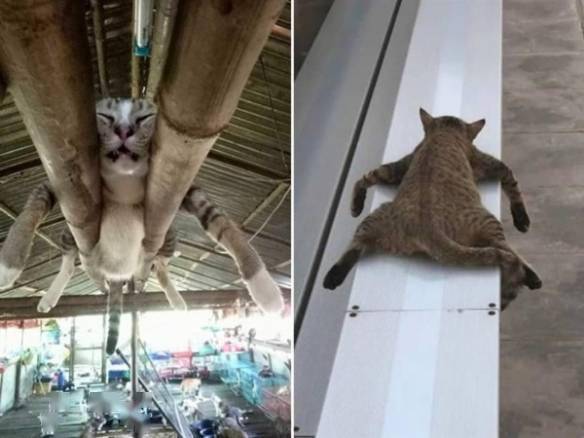 拥有卓越平衡感的猫,无视任何物理法则,他们想趴在哪里就趴哪里!地心引力对喵皇是完全无效的!