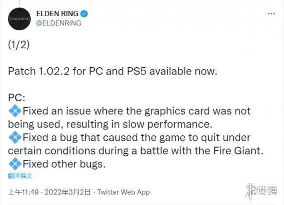 不过根据最新的官方补丁说明,这一问题的原因可能被“破解了”。在《艾尔登法环》官推发布的完整PC补丁说明中写有一条:开发团队“修复了显卡 未使用导致性能下降的问题”。