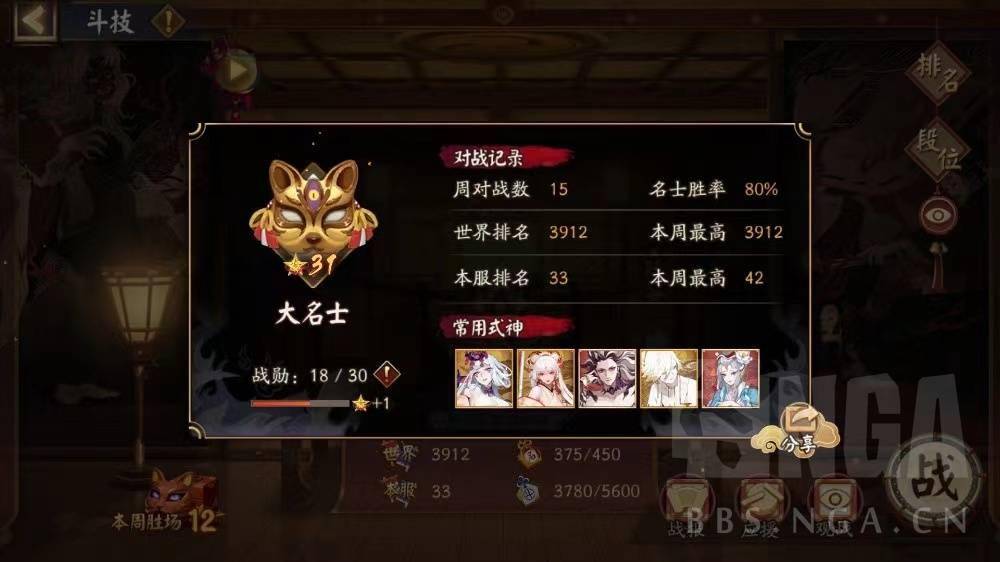 ban帝战绩 遇到川猿、花、御馔津也不怕。