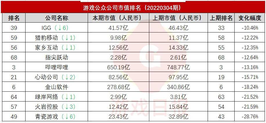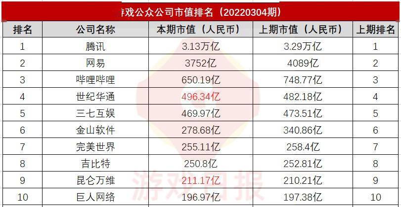 游戏公众公司市值排行榜26期:掉出700亿,B站市值创新低