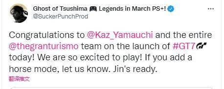 祝贺山内一典和整个GT团队在今天推出《GT赛车7》,我们非常期待游玩这款游戏。如果你们加入一个赛马模式,记得告诉我们。仁已经准备好了。