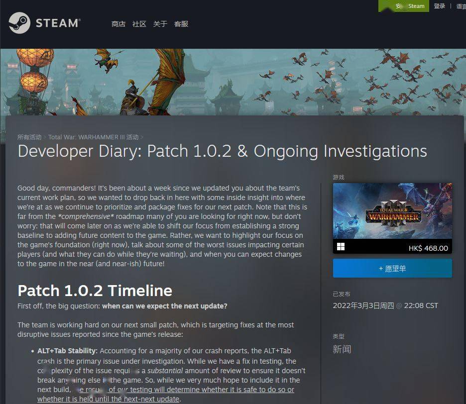 官方正在调查D加密对《全面战争:战锤3》的影响