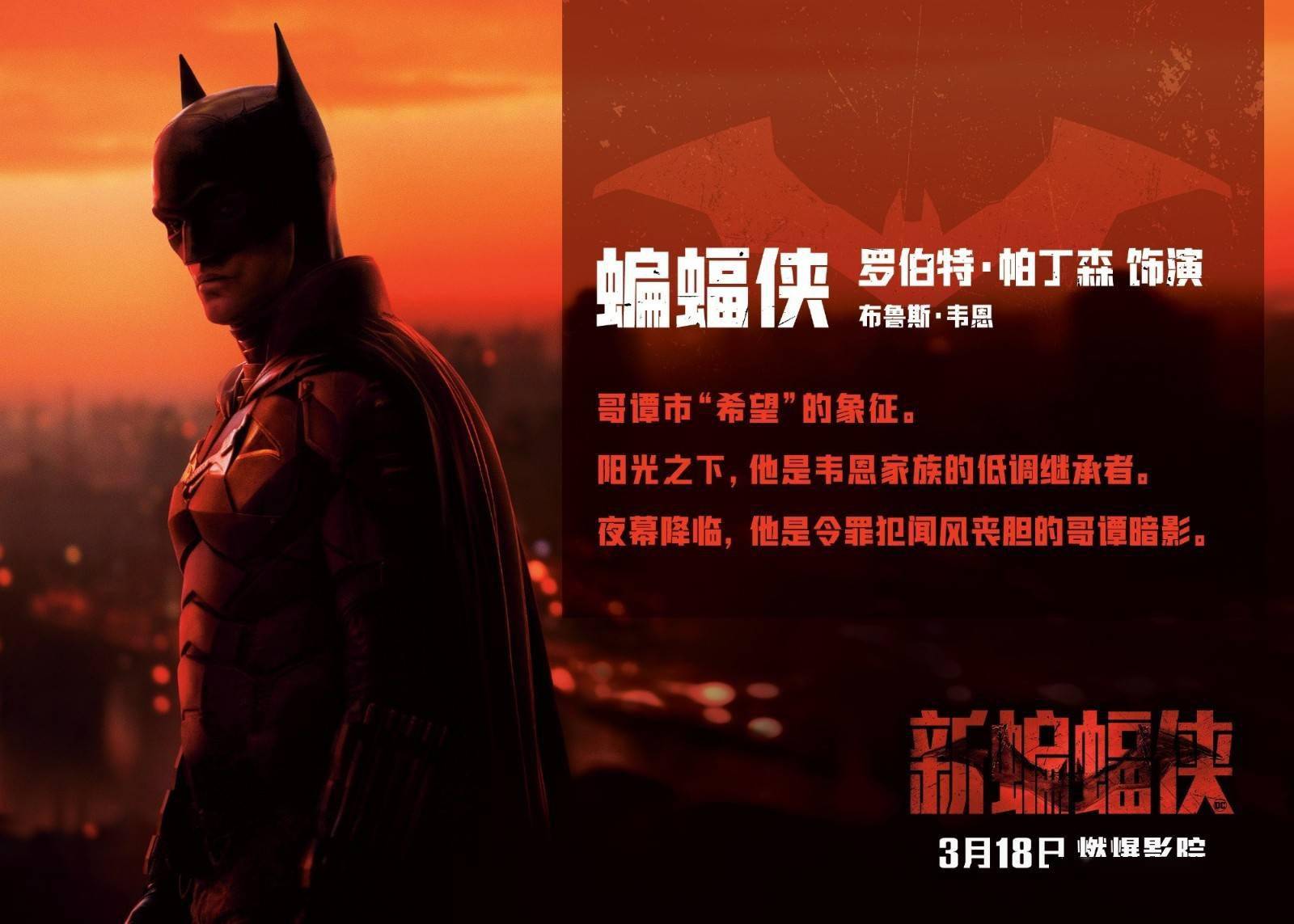 原标题:《新蝙蝠侠》全新中文角色介绍海报公布 3月18日上映