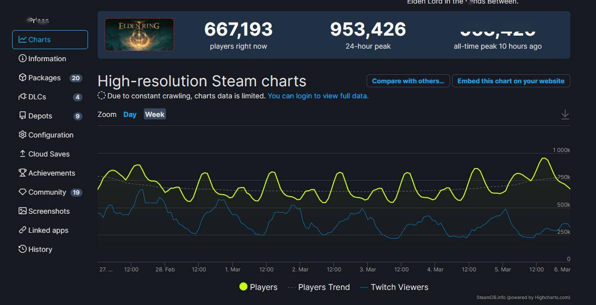 再创新纪录!《艾尔登法环》Steam在线峰值超95万