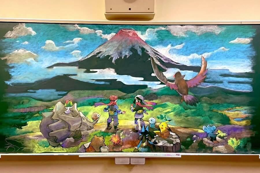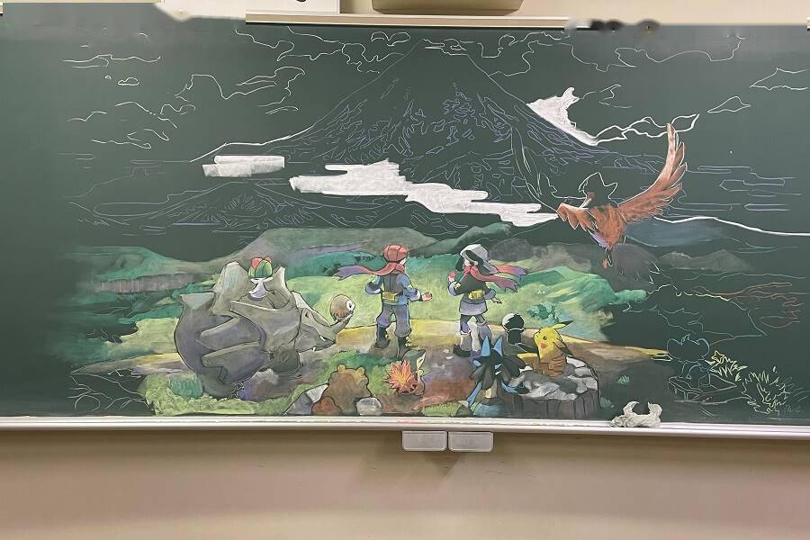 又到日本一年毕业季,日前一位日本美术老师特意制作了一幅黑板报来献给那些即将离开校园的学生们,主题选自人气游戏《宝可梦传说:阿尔宙斯》的主艺图,精美程度绝不亚于专业插画家水平,一起来欣赏下。