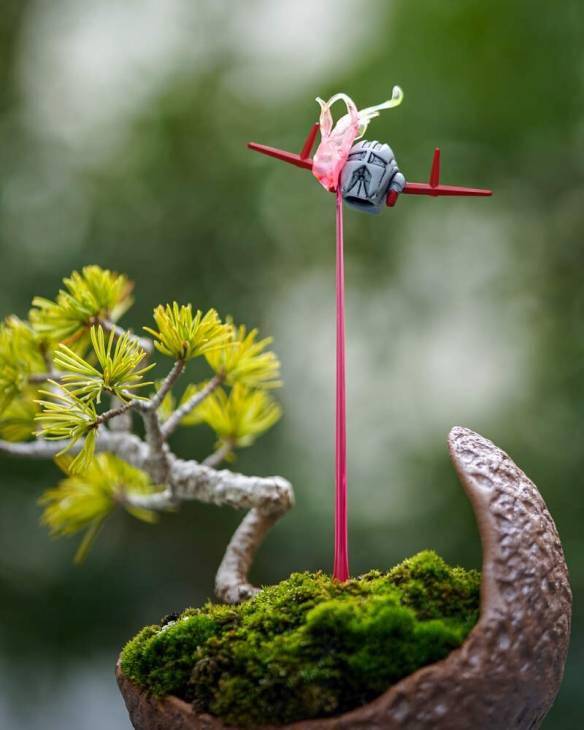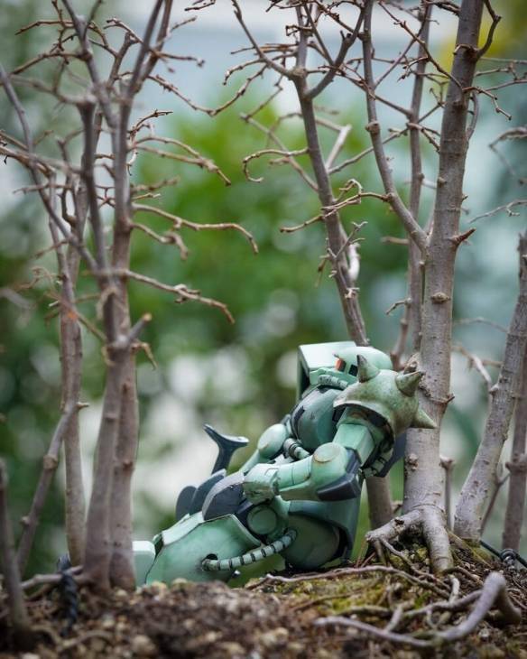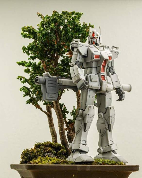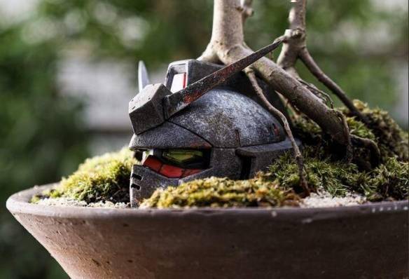 喜欢高达模型的人应该会买很多模型来收藏或者玩,不过大家有想过把高达和盆栽结合在一起吗?