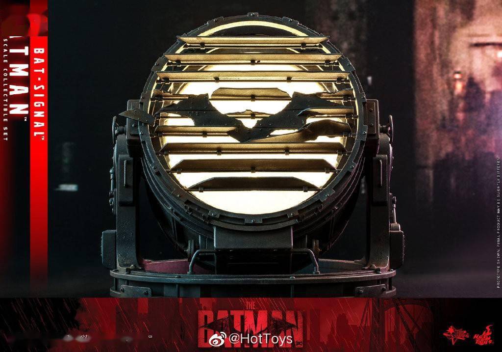 团队细致打造蝙蝠讯号灯1:6比例珍藏品,讯号灯约23cm长 X 24cm 宽 X 23cm高,整体呈现优质金属质感并饰有机身细节与呈不规则表面的蝙蝠侠标志。讯号灯还设有LED亮灯功能,备有可动功能设计,可调整投射角度,为蝙蝠侠人偶笼罩上一层更加阴郁沉重的氛围。
