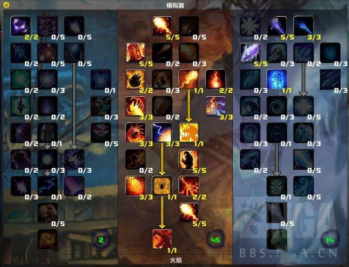 冰系这样点,可以在伊利丹P2多打点伤害!当然也可以冰系少点2点,加到火系射程上面。