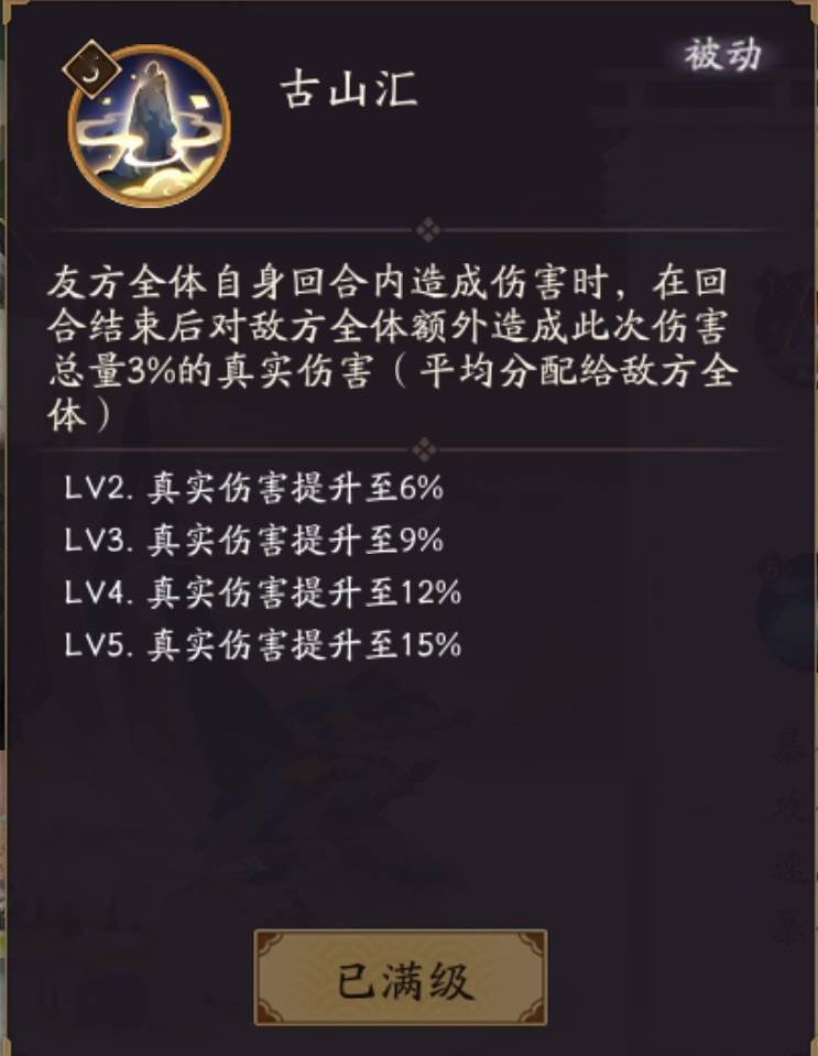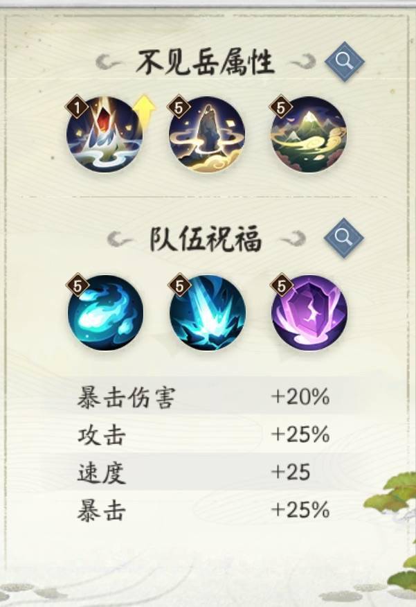 活动自带的不见岳结界时间非常久(5-6s),坐地增伤卡都可以随意选不费时间。技能点全部阵容通用的:优先点不见岳的一、二技能属性,然后再点队伍祝福。