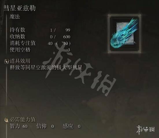 “灵魂激流”在《艾尔登法环》中原名 “彗星亚兹勒”,是法师职业的一个极强力的法术,不过智力需求很高(要60),在后期的地图中才能拿到。获取方式是在格密尔火山,亚人女王后面有NPC起源法师亚兹勒,交谈后就能得到。