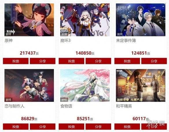 新浪财经联合新浪微博、国家版权交易中心联席会议,在中宣部版权管理局的指导下,开启了2021年十大年度国家IP评选投票。游戏类里,米哈游作品包揽前三名,代表作《原神》得票数最多,《崩坏3》拿下第二,《未定事件簿》夺得第三,《王者荣耀》未能进入得票榜前十。