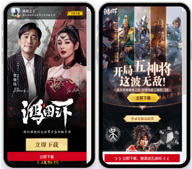 在过去的30天里,“宏图”总共有511个登陆页面,这些登陆页面集中在10月21日左右,即游戏开始时的货架。 但上架后,近14天的手游不再登陆页面。 手机游戏落地页素材及宣传内容一般,将明星代言与游戏亮点及运营活动相结合进行宣传下载。