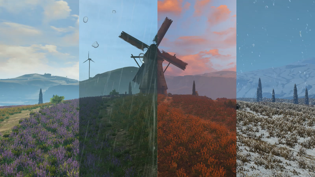 也许为了更好地“拾起”规划团队的想法,“明天”第三季之后直接用新的引擎和图形技术来铸造一个夸张大小的“无缝地图“! 为了展示真实世界的动态感,在本更新中还添加了“四季”和“天气”的概念。