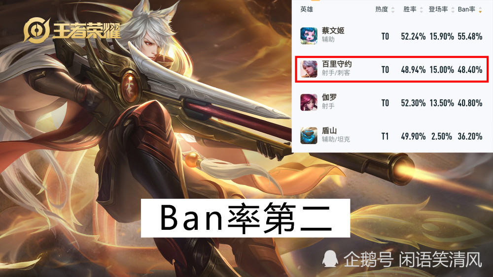 一百英里目前其实已经到了人人喊打的地步了,尤其在王者以下的段位,不管是什么平A流,还是无尽流,那真的是惨不忍睹。选出来之后一半以上就是演员,并且很大一部分玩家目的就是为了演,抱着的心态就是混一局,能赢则赢,赢不了就是队友太菜。毕竟对于 一百英里来说,有位移加上二技能中一枪的伤害,游戏输了之后他的输出20%,还有几个助攻,要是想举报那是真的难。所以,现在的守约,只能走上Ban位的道路。