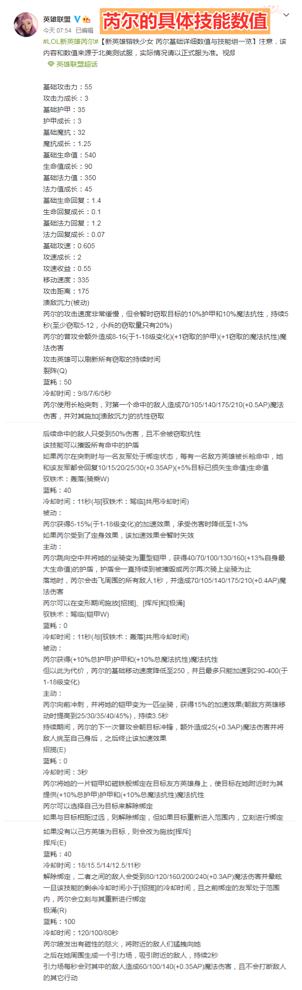 注意看数值,10%的双抗偷取。也就是说,目标越肉的话,芮尔的被动所能够发挥的作用越大。在官方的定义中,芮尔是一个坦克辅助。除了她之外,下路谁最肉?日女!以后碰到日女就不需要特别害怕了,选芮尔就完事了,技能机制其实很克制。