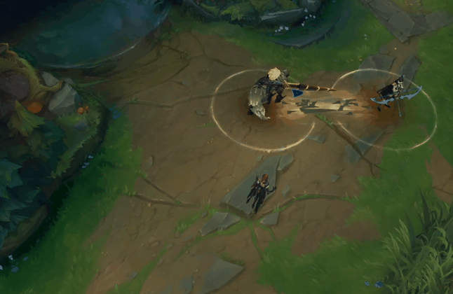 点评:其实很像是塔里克的眩晕技能,这种眩晕并不是锁定的,而是需要自己进行判断,在范围内触发才可以眩晕对手,也就是说对方的反应如果足够快的话,完全有时间和有能力来进行躲避。类似潘森W那样定点进行眩晕的技能越来越少了,十分考验玩家的操作能力,不同玩家的芮尔所带来的威力是完全不同的。